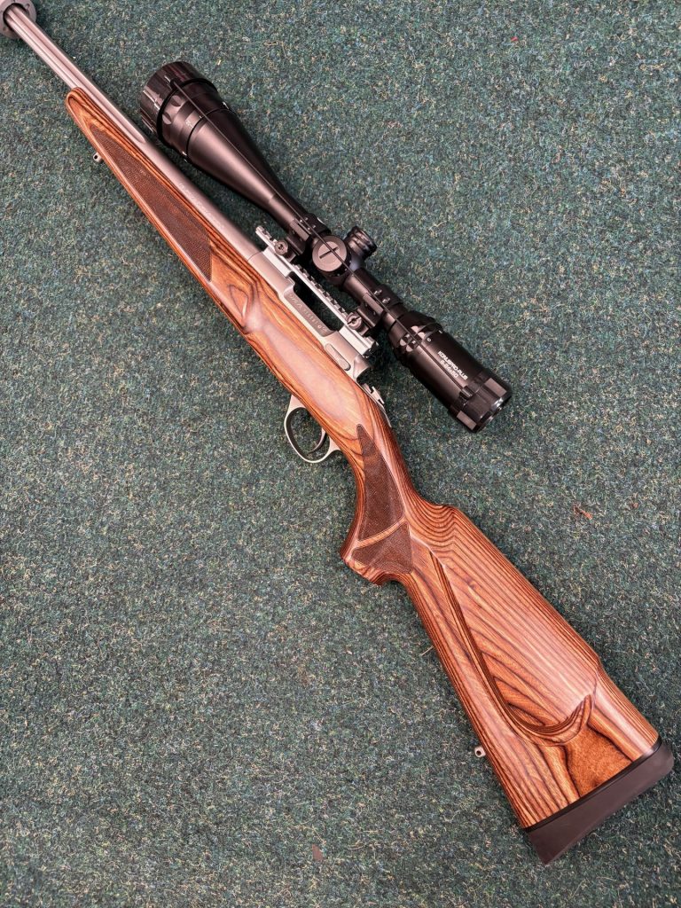 £450 21′ Stainless barrelScrew cut for mod3 x shot box magWalnut stockWeaver scope rail